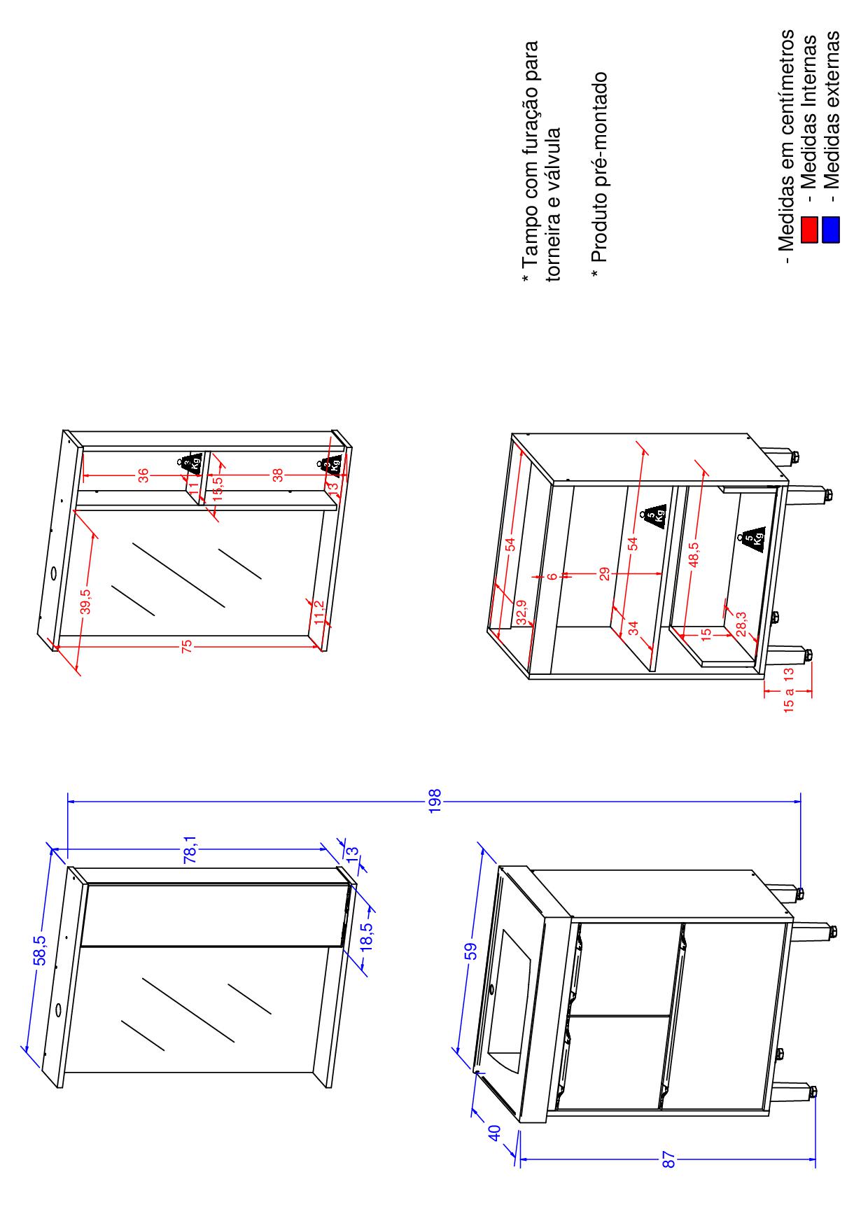 Peso Suportado nas Gavetas (Kg) 5 Kg