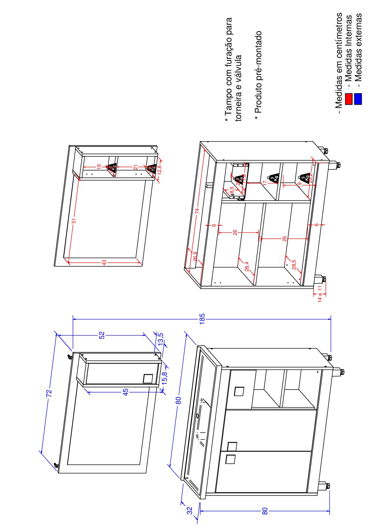 Como os Móveis Chegarão na Minha Casa Pré Montado, o balcão com necessidade de fixar os pés e puxadores e a espelheira com necessidade de fixar o nicho, puxador e suporte de fixação. Acompanha Manual.