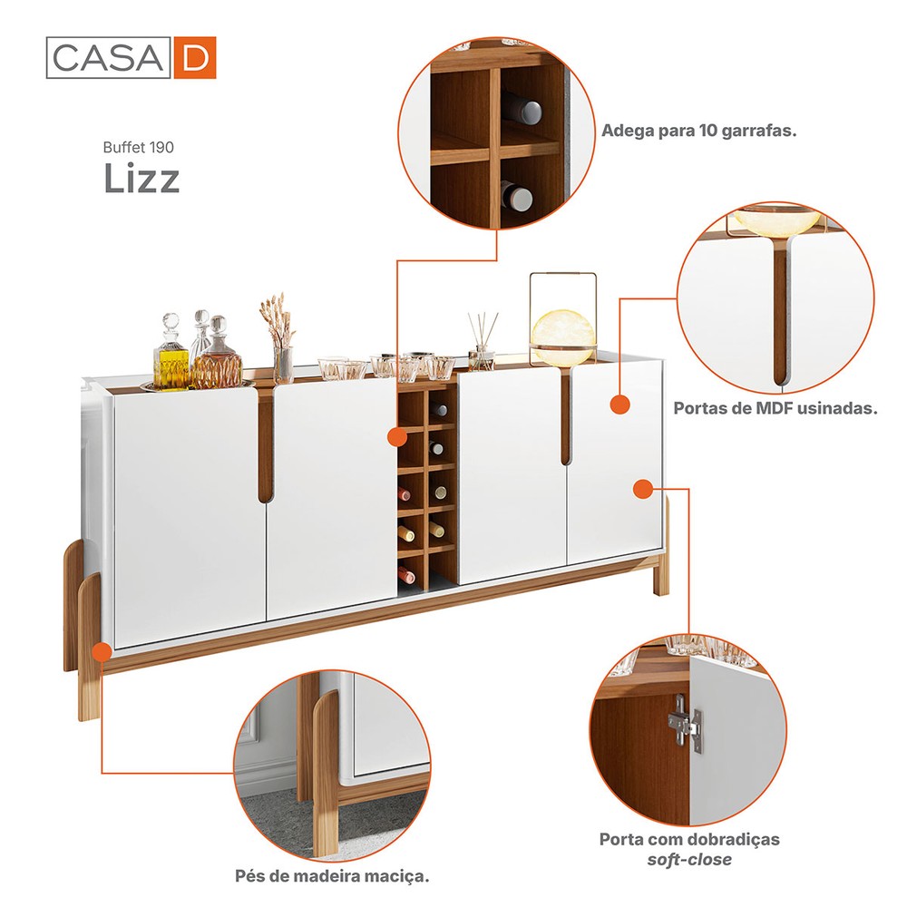 Balcão Buffet Lizz 4 Portas com Adega Branco/Cedro 050520 - Casa D