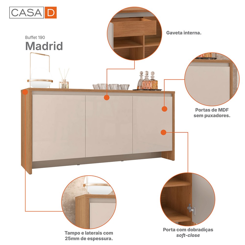 Balcão Buffet Madrid 3 Portas 1 Gaveta Cedro/Off White - Casa D