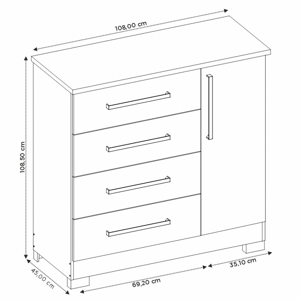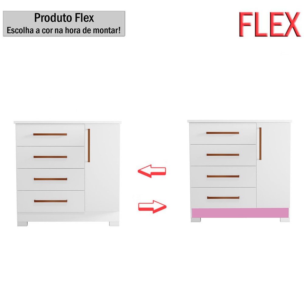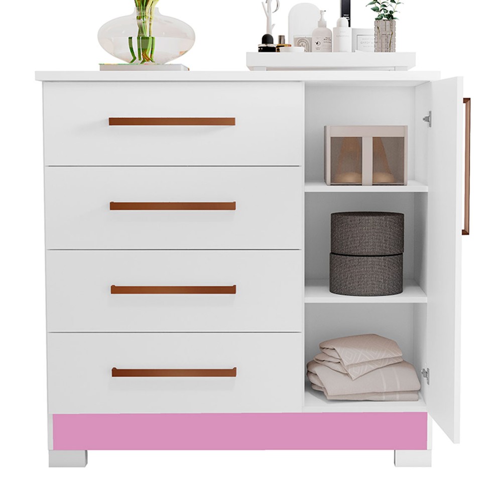 Cômoda 1 Porta 4 Gavetas Flex Branco New/Rosa Nt5185 - Notável Móveis