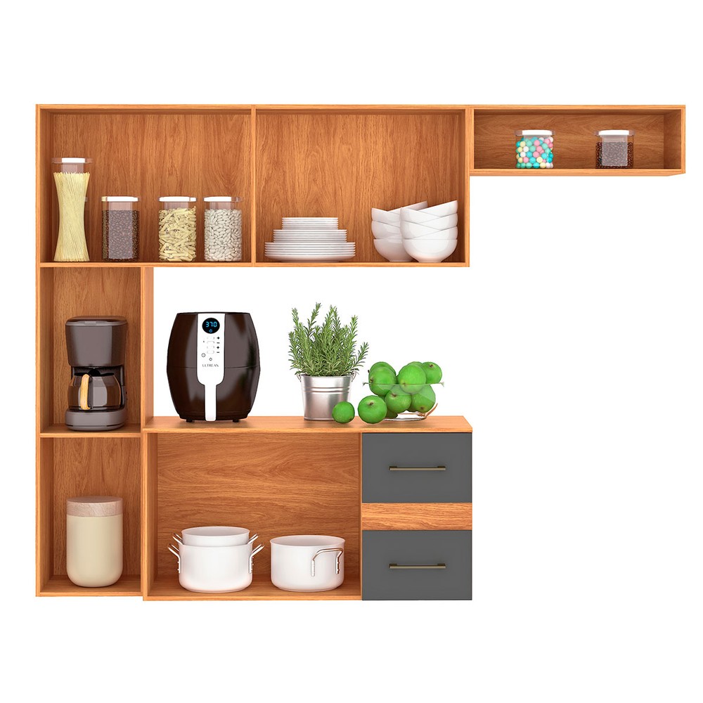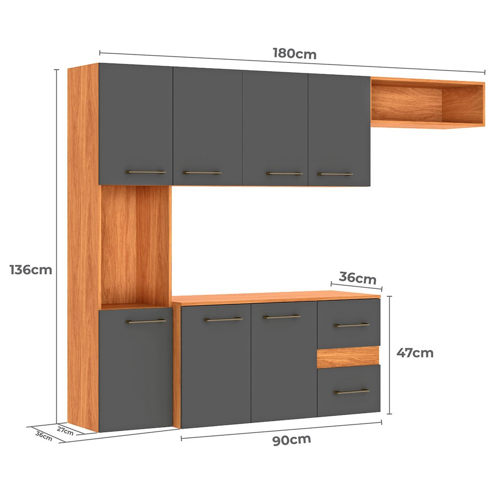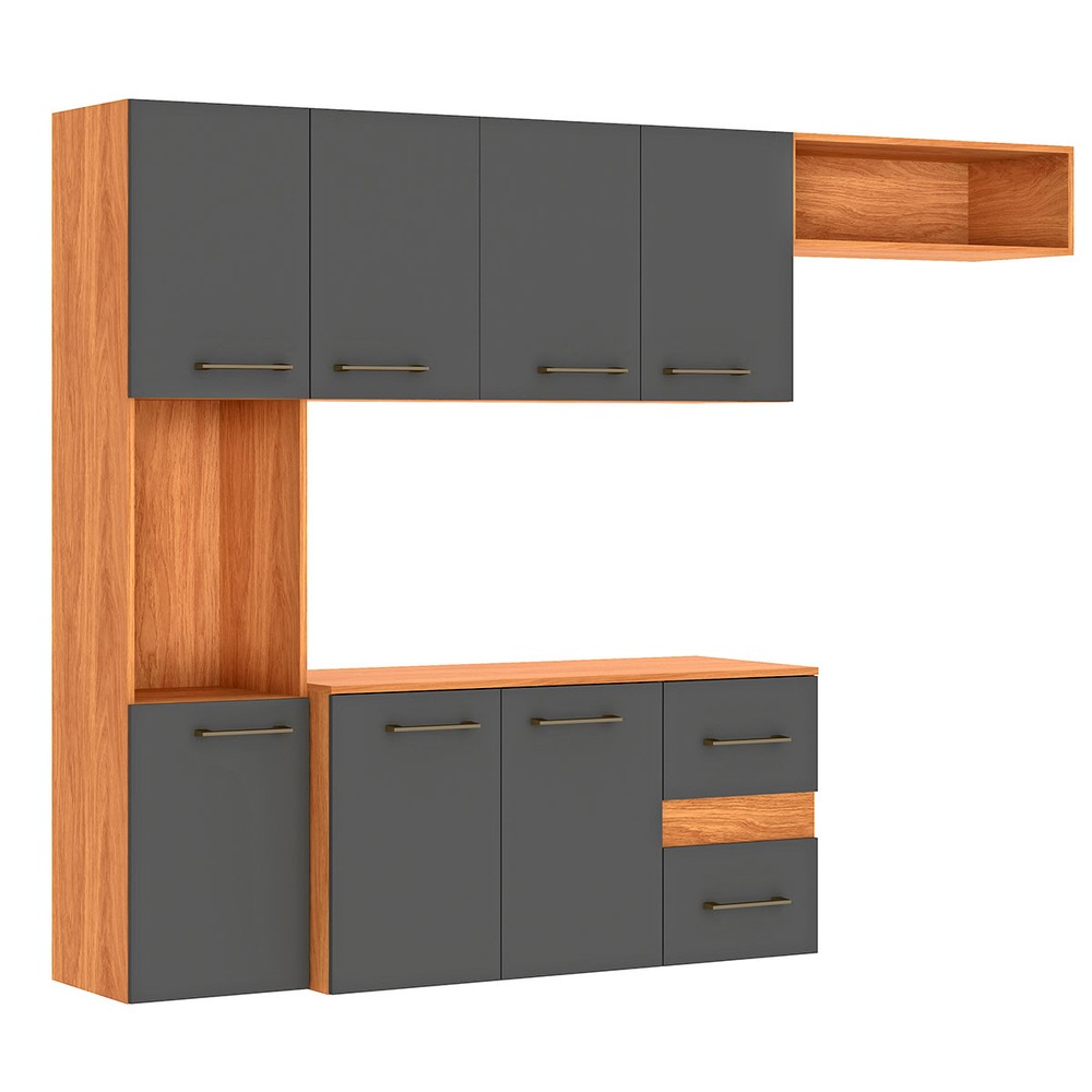 Cozinha Compacta Mila 7 Portas 2 Gaveta Cinamomo/Grafite - Fellicci (pnr Base)