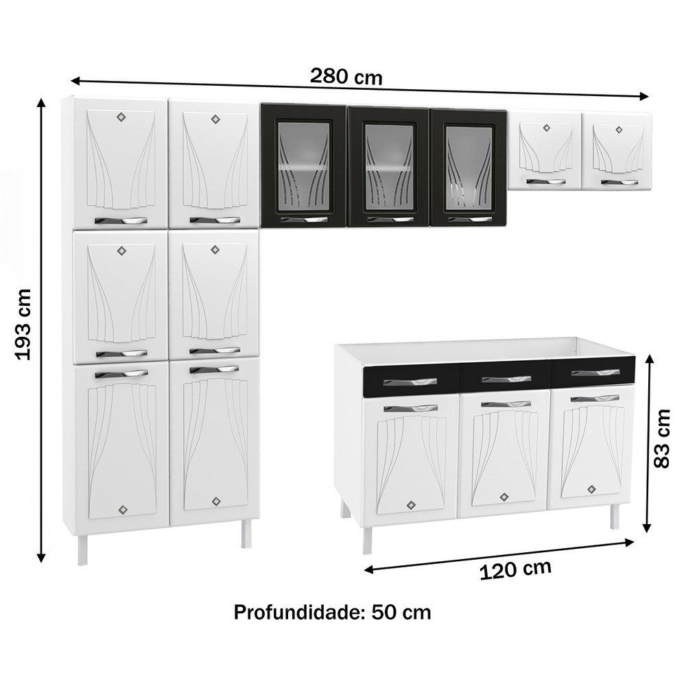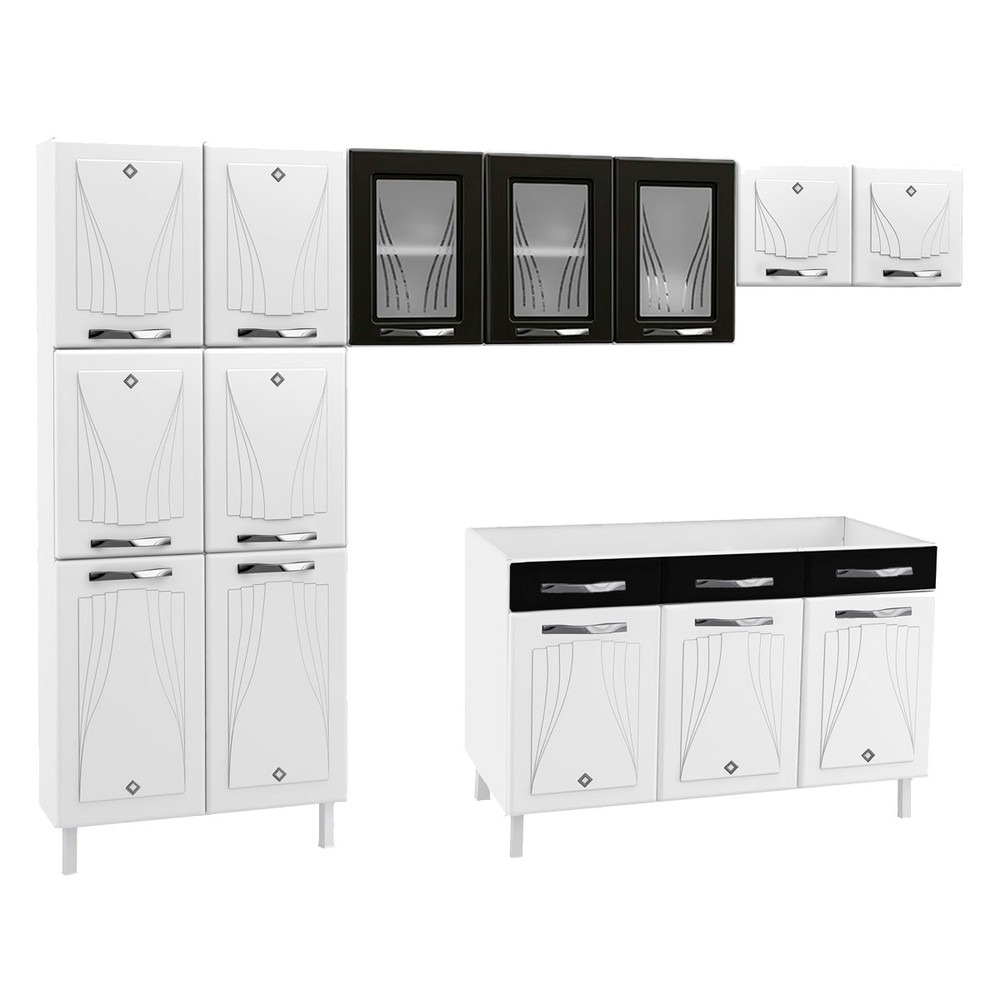 Cozinha de Aço Completa Star New 14 Portas 2 Gavetas Branco/Preto - Telasul