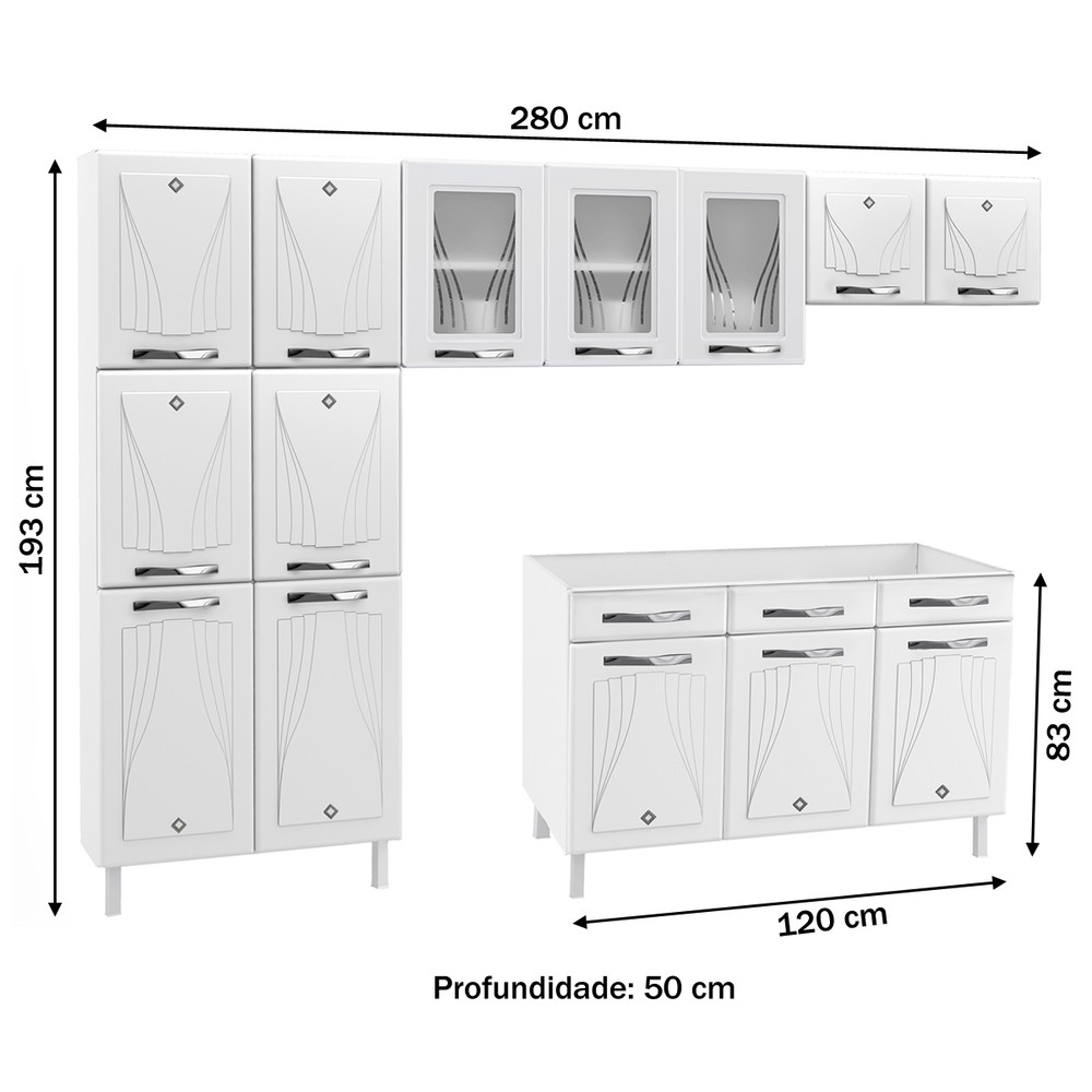 Cozinha de Aço Completa Star New 14 Portas 2 Gavetas Branco - Telasul