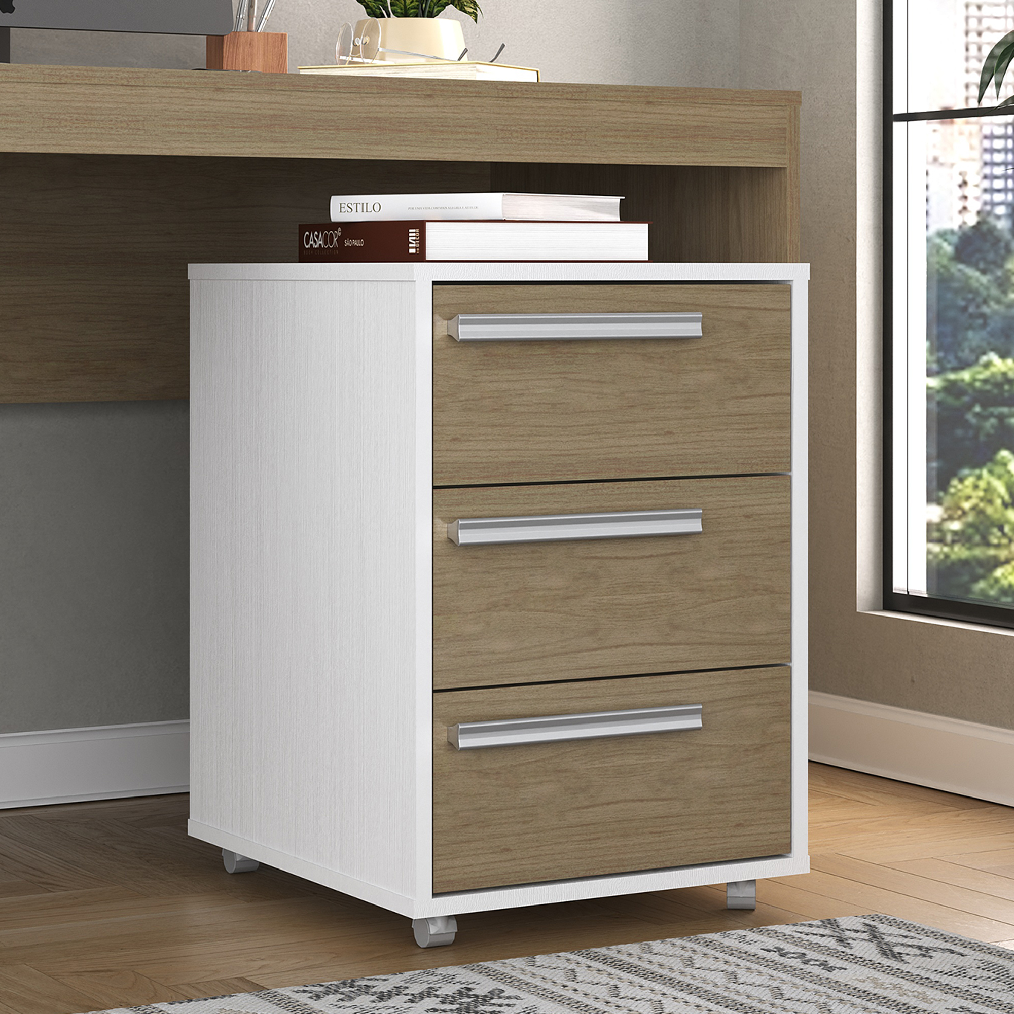 Gaveteiro 3 Gavetas com Rodízios Branco Fosco Ho-2929 - Hecol Móveis
