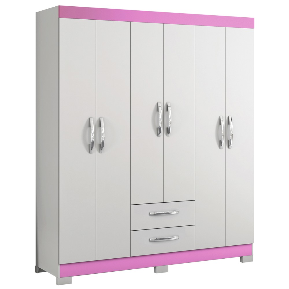 Guarda-Roupa Casal 6 Portas 2 Gavetas Branco New/Rosa Nt5130 - Notável