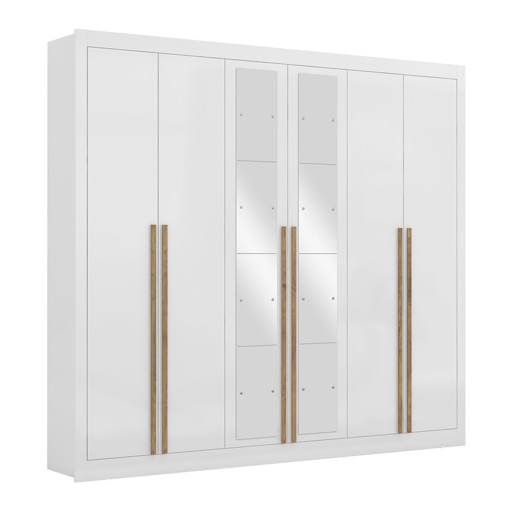 Guarda-Roupa Casal Cannes 6 Portas 6 Gavetas com Espelho Branco - Maxel