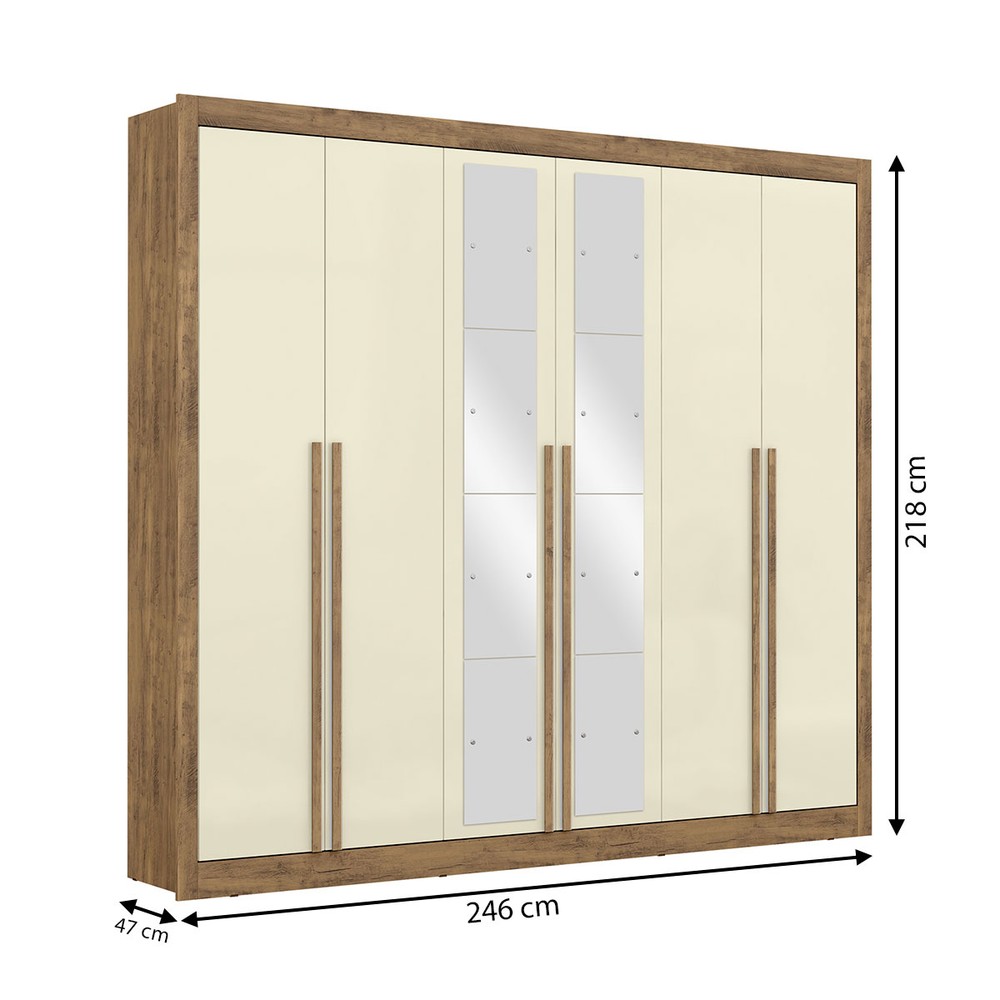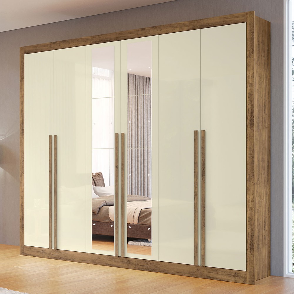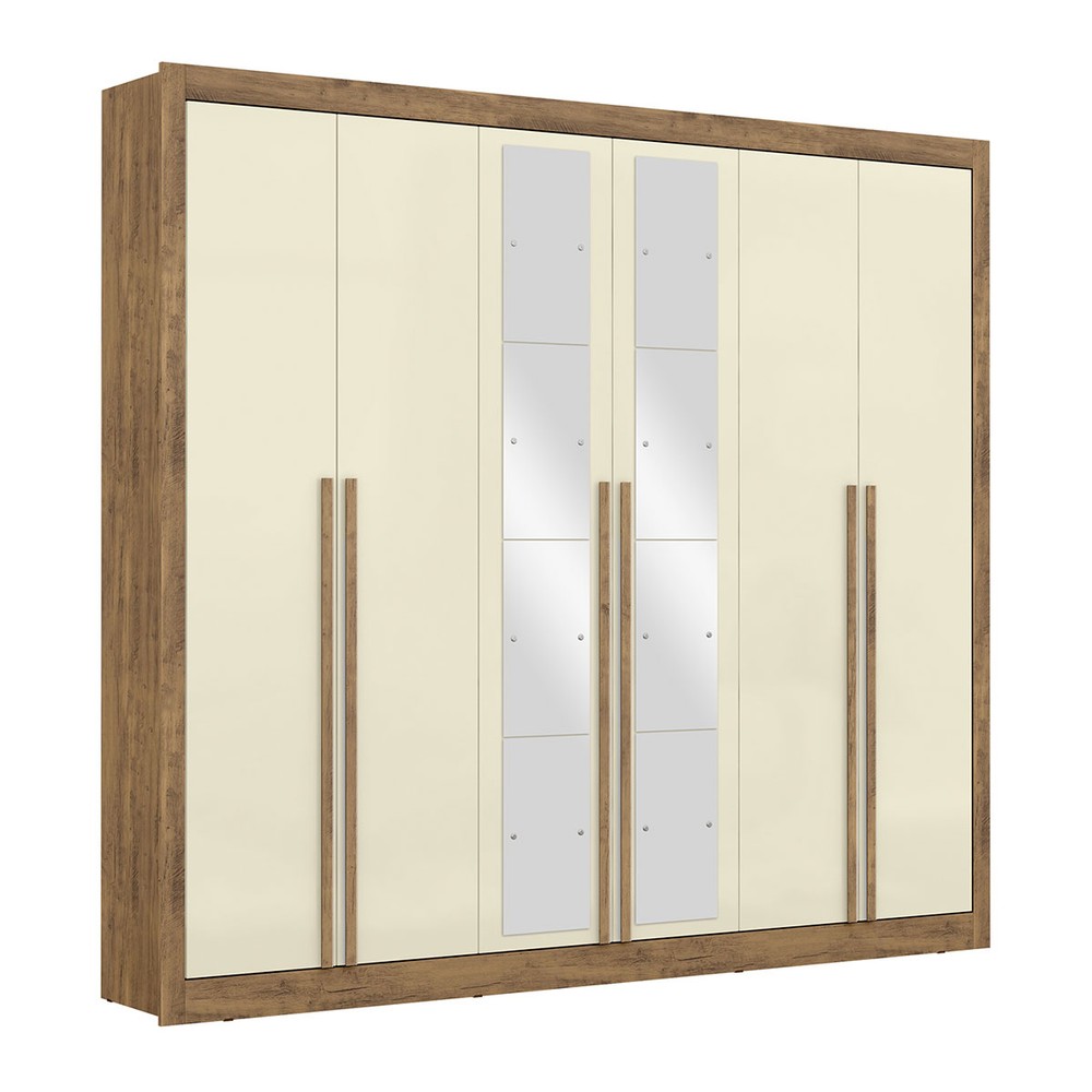 Guarda-Roupa Casal Cannes 6 Portas 6 Gavetas com Espelho Ipê/Off White - Maxel