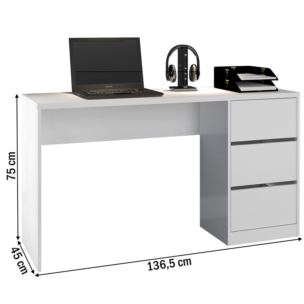 Mesa para Computador 3 Gavetas 5105r Branco Fosco - Atualle Móveis