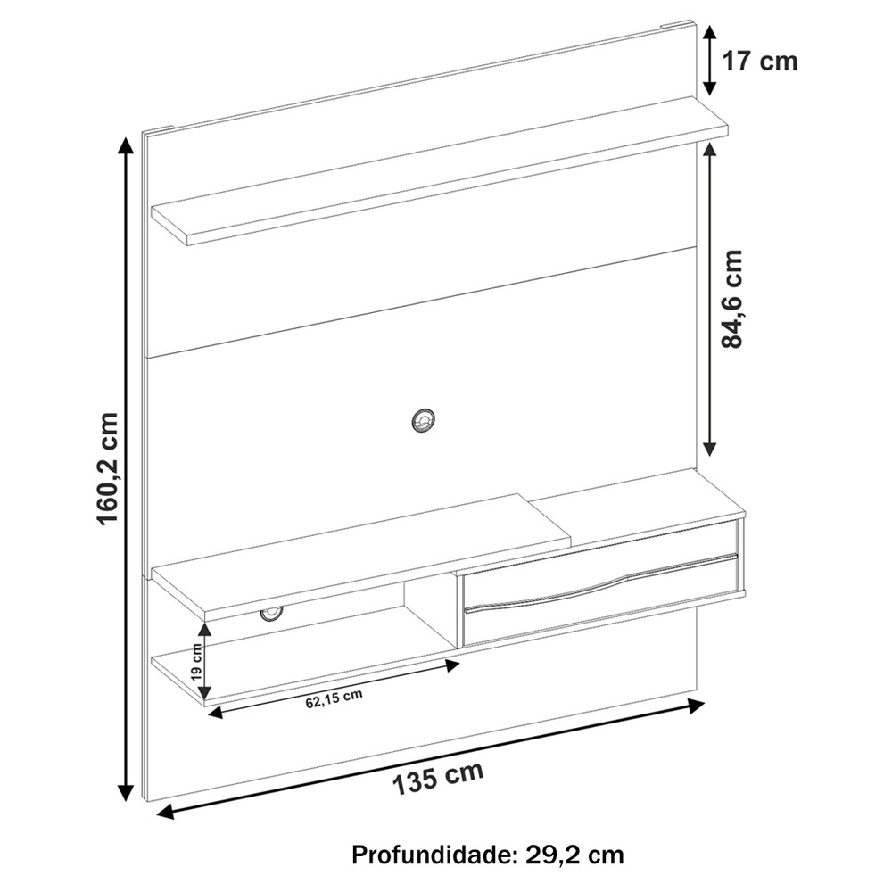 Observação Compacto e com um belíssimo design! Esse é o Painel NT 1155 da Notável Móveis. Para utilizar na sala, no quarto ou na área de festas, tem capacidade para TV até 55’’, possui puxador curvado em ALUMÍNIO e a dobradiça da porta é com amortecedor, que suaviza o fechamento. O móvel certo para quem busca estilo e um bom aproveitamento de espaço!DOBRADIÇA SUPER CURVA 35 mm COM AMORTECEDOR E PUXADOR CURVO EM ALUMÍNIO, PRATELEIRA SUPERIOR DE 25MM.
