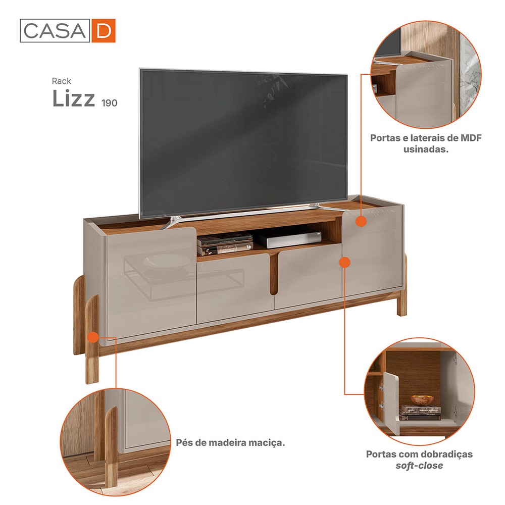 Rack para TV Até 60 Polegadas Lizz 4 Portas Off White/Cedro - Casa D